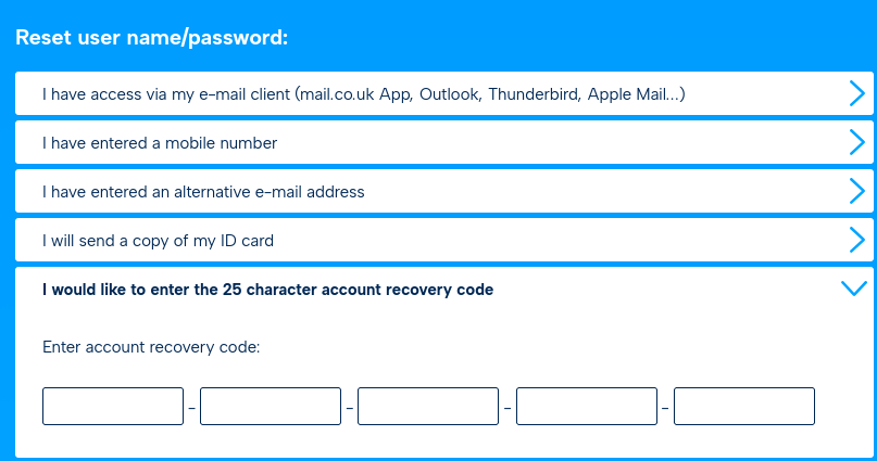 Option 5: "I want to enter my 25-digit password recovery code"